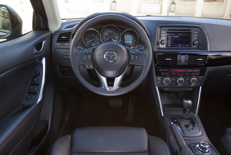 Mazda CX-5 – Das kompakte SUV kommt im April28.11.2011 Zu Preisen ab 27.890 Euro bringt Mazda im April 2012 den neuen CX-5 mit Allradantrieb auf den Markt. In der Basisversion ist das kompakte Crossover-SUV mit einem neuen 2,0-Liter Benzinmotor (121 kW/165 PS) kombiniert, daneben steht ein ebenfalls neu entwickelte 2,2-Liter Diesel in zwei Leistungsstufen mit 110 kW/150 PS und 129 kW/175 PS (beide Euro 6) zur Verfügung. Darüber hinaus haben die Kunden je nach Motorisierung die Wahl zwischen Front- und Allradantrieb sowie zwischen einem manuellen Sechsgang-Getriebe und dem Sechsstufen-Automatikgetriebe (1.800 Euro Aufpreis). Zum Serienumfang der Allradversionen gehört das „Center-Line“-Ausstttungspaket, das neben der kompletten Sicherheitsausstattung auch ein Start-Stopp-System, Bordcomputer, Klimaautomatik und Radio/CD mit Lenkradbedientasten sowie AUX- und USB-Anschluss beinhaltet. Ein Tempomat, 17-Zoll-Leichtmetallfelgen, Licht- und Regensensor, ein 5,8-Zoll Farb-Touchscreen in der Mittelkonsole, Lederlenkrad, Freisprecheinrichtung mit Sprachsteuerung sowie ein City-Notbremsassistent runden die Serienausstattung des CX-5 mit Allradantrieb ab. Im Fond sorgt eine dreigeteilt umlegbare Rücksitzbank (40:20:40) für Variabilität.