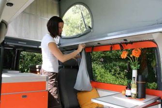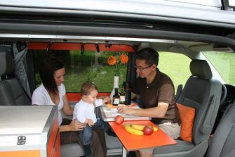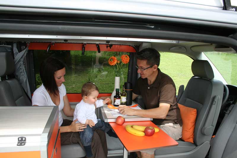 Premiere auf dem Caravan Salon 2011 in Düsseldorf: Terra Camper präsentiert Fernreise-Mobil Terock auf VW T5 Rockton17.08.2011 Auf Basis des VW T5 Rockton hat der Hagener Reisemobil-Spezialist Terra Camper ein Fernreise-Fahrzeug der Kompaktklassse entwickelt. Der „Terock Expedition“, so die Bezeichnung der jüngsten Kreation aus dem Hagener Betrieb von Martin Hemp, feiert seine Premiere auf dem Caravan-Salon in Düsseldorf, der am vierten August-Wochenende seine Tore öffnet. Der Preis des Terra Camper Terock Expedition liegt bei 53.900 Euro. Der allradgetriebene T5 Rockton brachte mit seinem höhergelegten Fahrwerk, einem kurz übersetzten Getriebe und einem Unterfahrschutz ideale Voraussetzungen für das Konzept eines geländegängigen Fernreisecampers mit, so Firmenchef Martin Hemp. Darauf bauten die Techniker von Terra Camper ein Innenraum-Konzept mit in die Seitenteile integrierter Bordtechnik, einem speziellen Schienenboden, demontierbaren Einzelsitzen im Fond sowie herausnehmbaren Möbel-Modulen aus leichtem Aluminium für Kühlbox, Kocher, Spülbecken und Stauräumen. Als weitere Spezialität von Terra Camper kommt auch im Terock das eigen entwickelte „Easy-Use-System“ zum Einsatz. Das beinhaltet unter anderem Schienen im Dachbereich, an denen man mit speziellen Haltern eine Vielzahl von Zubehör – wie etwa Gardinen, Handtuchhalter oder Kulturbeutel – einhängen kann. Fahrer- und Beifahrersitz sind drehbar und lassen sich mit einem dritten Sitz im Wohnbereich sowie einem Klapptisch zur praktischen Sitzecke gestalten. Das Spül-Modul mit Edelstahlbecken und integriertem, herausnehmbarem Abwassertank kann sowohl im Wohnbereich wie auch im Freien genutzt werden.
