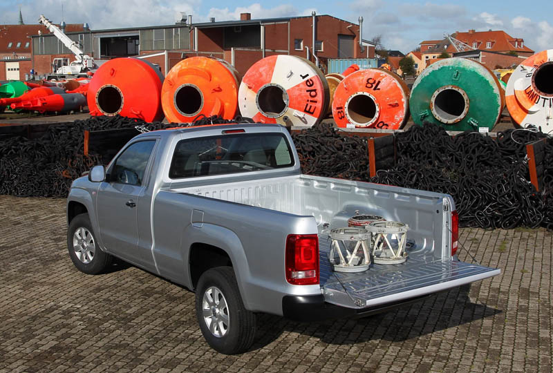 Im Vergleich zum Amarok mit Doppelkabine verfügt der SingleCab bei gleicher Fahrzeuglänge sowie gleichem Radstand über eine 2.205 Millimeter lange Ladefläche. Auf der damit gegenüber dem DoubleCab um 65 Zentimeter längeren Pritsche lassen sich nun zwei quer aufgeladene Europaletten hintereinander verstauen, es verbleiben dann noch 60 cm Ladeflächenlänge. Bei einer unverändert großen Durchladebreite von 1,22 Metern zwischen den Radkästen bietet sich eine 3,57 Quadratmeter  große Ladefläche. Die Heavy-Duty-Federung ermöglicht eine maximale Nutzlast von bis zu 1,248 Tonnen.