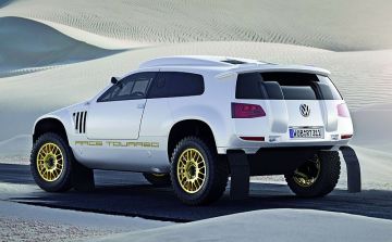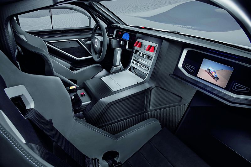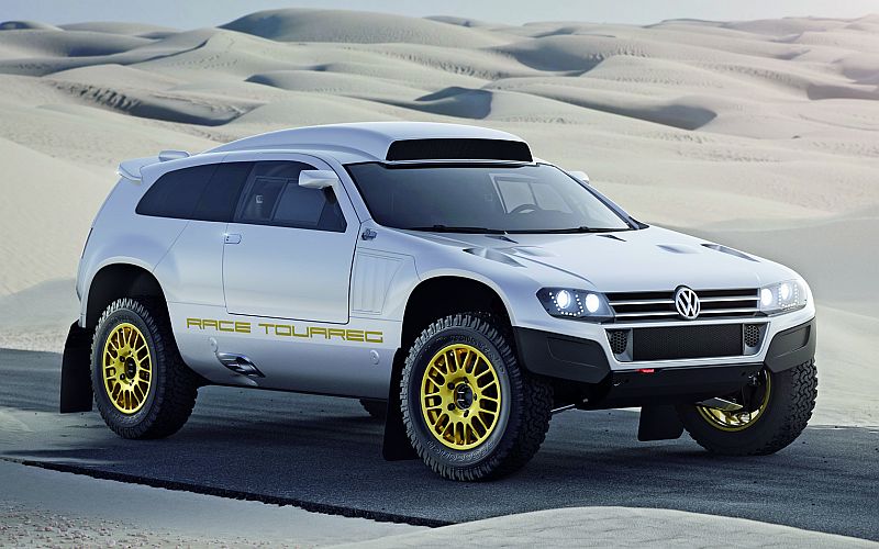 Volkswagen präsentiert auf der ersten Qatar Motor Show (26. bis 29. Januar) zwei exklusive Geländewagen-Studien27.01.2011 Gemeinsamer Nenner dieser Allradler: Keine Kompromisse! Showcar Nummer 1 ist eine zivile Version des Anfang Januar bei der Rallye Dakar gestarteten Race Touareg 3 mit Straßenzulassung. Der 228 kW / 310 PS starke VW dürfte der weltweit talentierteste Geländewagen mit Straßenzulassung sein. Der Race-Touareg 3 ist ein waschechter Rallye-Rennwagen, konstruiert, um bei den härtesten Rallyes der Welt zu bestehen. Nun folgt mit dem Race Touareg 3 Qatar eine für den öffentlichen Verkehr freigegebene Version dieser in weniger als sechs Sekunden auf 100 km/h sprintenden Geländefahrmaschine. Die knapp zwei Meter breite Karosserie wurde im Hinblick auf die Straßenzulassung leicht modifiziert. Komplett neu gestaltet wurde das Interieur; erhalten blieb einzig der Sicherheitskäfig. Ohne Kompromisse, das bedeutet auch kompromisslos leicht und kompromisslos ergonomisch. Der Innenraum präsentiert sich deshalb extrem aufgeräumt, konzentriert auf die Fahrmaschine, ausgestattet mit Recaro-Rennschalensitzen.