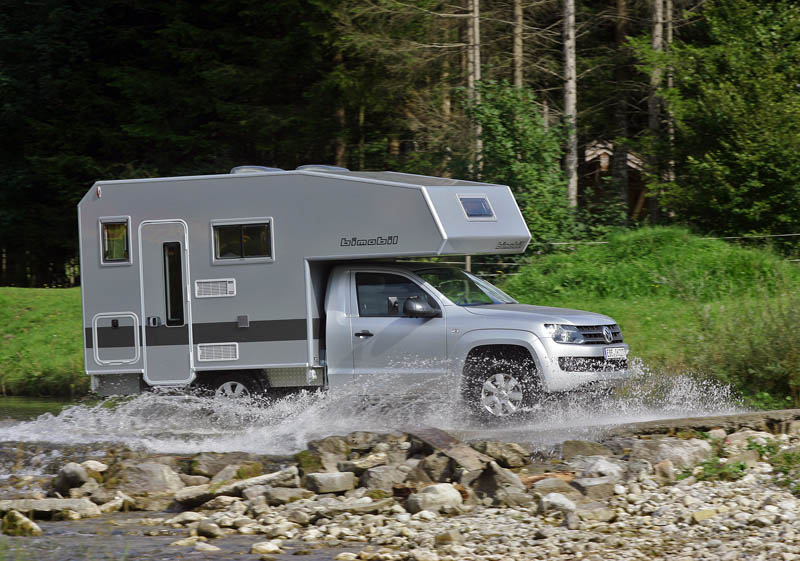Der VW Amarok wird mit der neuen bimobil Absatzkabine husky 270 zum Reisemobil für zwei bis drei Personen.