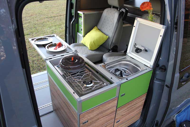 Zur Basisaustattung des Tecamp gehören das Küchenmodul mit Kompressor-Kühlbox, herausnehmbarem zweiflammigem Spirituskocher und Edelstahl-Spülbecken sowie ein 40 Liter Frischwassertank inklusive Druckpumpe, zwei Wassersteckdosen und Handdusche. Gegen Aufpreis gibt's eine Box sowie weitere Stausysteme und verschiedene Schlafdachkonstruktionen – von fest bis klappbar. Die Preisliste für den TerraCamper Tecamp beginnen bei 41.900 Euro (2,0-l Diesel mit 62 kW / 84 PS). Auf der CMT ist TerraCamper in Halle 5, Stand 5D64 zu finden.