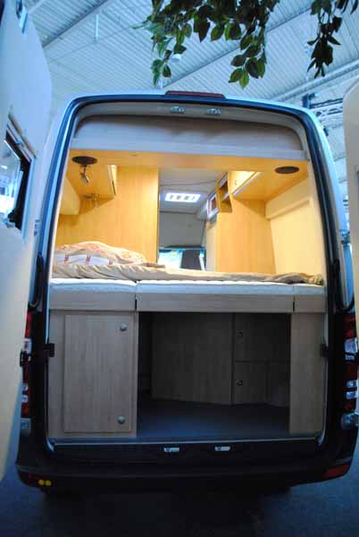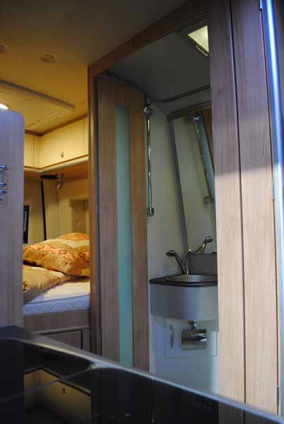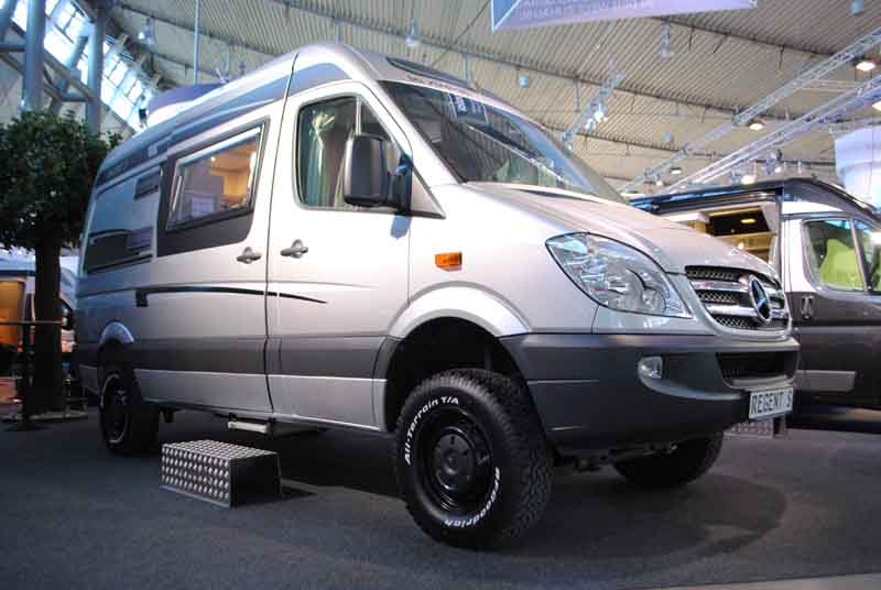 La Strada auf der CMT 2013 in Stuttgart: Campingbus Regent S auf Sprinter 4x415.01.2013 Noch bis zum kommenden Sonntag, 20.1., können sich Fans von allradgetriebenen Reisemobilen auf der CMT-Messe in Stuttgart über potenzielle Freizeitgefährte informieren. Dazu zählen auch die Campingbusse des hessischen Spezialausbauers La Strada. Einer davon ist der Regent S auf Basis des Mercedes Sprinter 4x4. La Strada Fahrzeugbau aus Echzell hat dazu die Serien-Allrad-Variante des Stuttgarter Kastenwagens höher gelegt und auf 16-Zoll Räder mit 245/75er BF Goodrich All Terrain Reifen gestellt. Der Antriebsstrang mit dem elektrisch zuschaltbaren Vorderradantrieb und variabler Kraftverteilung wird übernommen. Der Preis für den Regent S 4x4 mit der 120 kW/163 PS-Motorisierung liegt dann bei 71.616 Euro. Alternativ kann der Kunde die Variante mit der ebenfalls elektrisch zuschaltbaren Getriebeuntersetzung (1:1,42) für einen Aufpreis von 739 Euro ordern. Neben dem Regent S sind auch alle anderen La Strada Campingbus-Modelle auf Sprinter-Basis mit dem Allradantrieb lieferbar. Die Einrichtung des Regent S 4x4 entspricht dem Klassenstandard: Gleich hinter dem Fahrerabteil mit seinen beiden drehbaren Sitzen ist die Halbdinette mit Tisch und Zweiersitzbank installiert. Ihr schräg gegenüber wurde das Küchenmodul mit einer Edelstahleinheit aus Dreiflammherd und Spüle sowie 60 Liter-Kühlschrank angeordnet. Das Bad mit Waschbecken/Dusche/Cassettentoilette befindet sich auf der linken Fahrzeugseite. Das quer im Heck eingebaute Bett zeigt sich mit 195 x 119-144 cm ausreichend groß für zwei Erwachsene dimensioniert. Der große Schubladenschrank darunter ist herausnehmbar, um bei Bedarf eine Durchlademöglichkeit für lange Gegenstände zu eröffnen. Fotos: Egbert Schwartz |