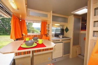 Für ein bimobil typisch ist der solide Möbelbau mit hellem, freundlichem Dekor. Zahlreiche Ablagen, Staufächer sowie Schränke nehmen das Reiseequipment auf, insgesamt verkraftet der EX 280 knapp 400 kg Zuladung. Für Wärme beim Wintercampen in der gut isolierten Kabine sorgt eine Dieselheizung, die autarke Stromversorgung übernimmt eine 130 Ah starke Aufbaubatterie, die gegen Aufpreis über eine Solaranlage auf dem Dach gespeist werden kann. Wie alle Wohnkabinen aus dem Hause Bimobil ist auch der neue Aufbau wahlweise als fest auf dem Chassis montierte oder abnehmbare Einheit bestellbar.