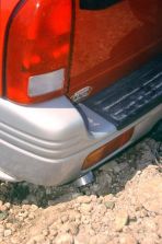Geländewagen Fahrschule Teil 3 - Über Gräben und Kuppen - Seite 3Doch eine weitere Gefahr lauert noch: Sobald nämlich die Achsverschränkung nicht ausreicht, um die beiden anderen diagonal gegenüberliegenden Räder auf dem Boden neben der Kuppe zu halten, bricht die Traktion zusammen: Die beiden ausgefederten Räder drehen jetzt leer in der Luft. Deshalb müssen wir kurz vorher ein wenig Gas geben, damit der Schwung ausreicht um den Fourwheeler die entscheidenden paar Zentimeter antriebslos über das Hindernis rollen zu lassen. Hat man die Kuppe fast schon gemeistert, lauert noch eine letzte Gefahr: Ist sie hoch und steil, kann es nämlich noch vorkommen, dass jene hintere Fahrzeugecke aufsitzt, deren Rad als letztes das Hindernis überrollt hat. Ragt nun der Auspuff ungeschützt auf dieser Seite unter der Stoßstange heraus, ist eine Grundberührung dieses empfindlichen Teils durchaus wahrscheinlich.