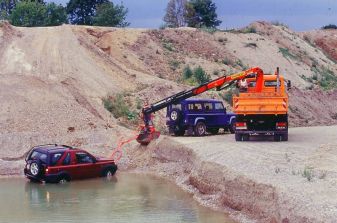 Geländewagen Fahrschule Teil 6 - Wasser hat keine Balken - Seite 7Doch auch wenn man alle Vorsichtsmaßnahmen beachtet hat, bleibt bei Flussdurchquerungen immer ein Rest an Risiko: Eine Garantie, das gegenüberliegende Ufer zu erreichen, gibt es nicht. Deshalb der Tipp: Flussdurchquerungen mit mindestens zwei Geländewagen und ausreichender Bergeausrüstung angehen. Dabei sichert immer ein Offroader vom Ufer aus den anderen der sich im Fluss bewegt. Doch Wasser hat keine Balken: Selbst durch eine gründliche Vorbereitung darf man sich nicht in trügerischer Sicherheit wähnen – steckenbleiben ist immer drin. Text + Fotos: WortGetriebe