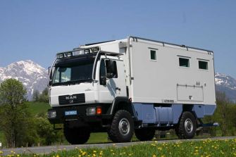 Ein wohlhabendes afrikanisches Königsvolk gab dem neuesten Modell von Actionmobil seinen Namen: Ashanti. Als Clou dieses von Stephan Wirths und seinem Team aus dem österreichischen Saalfelden auf einem allradgetriebenen MAN-14.280-Chassis aufgebauten 11,7-Tonners verbirgt sich im Heck. Dort lässt sich die Rückwand nach dem Lösen und Wegschwenken des Reserveradhalters mitsamt einem Teil des Heckgaragen-Bodens hochklappen. Damit lässt sich beispielsweise ein schweres Geländemotorrad mit Hilfe eines elektrischen Flaschenzugs auf den Erdboden ablassen.