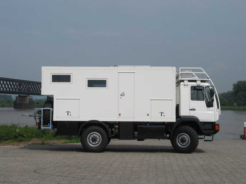 Bocklet – Der Bücherbus - Seite 4Die Geräte-Ausstattung und die Größe der Tanks entsprechen dem Einsatzzweck des Fahrzeugs und der Forderung nach größtmöglicher Autarkie. Außer den 600 Litern Diesel-Kraftstoff sind 400 Liter Frischwasser an Bord. Der Abwassertank fasst 200 Liter. Die Kapazität der Bordbatterien summiert sich auf 440 Ah, die Solaranlage leistet 220 Watt. Ein Wechselrichter mit drei Kilowatt Nennleistung ermöglicht es, übliche Haushaltsgeräte zu betreiben und Akkus von Handys, Kameras oder Laptops zu laden. Auf alle Eventualitäten der Energiebeschaffung ist die Heizung des Dakar 720 ausgelegt. Sie kann auf zwei parallel geschaltete Systeme zurückgreifen: eine 3,5-kW-Diesel-Luftheizung von Eberspächer und eine E-2400-Gas-Luftheizung von Truma. Je nachdem, ob in der jeweiligen Gegend, in der die Reisenden gerade unterwegs sind, leichter – oder billiger - Diesel-Kraftstoff bzw. Gas zu bekommen ist.