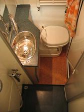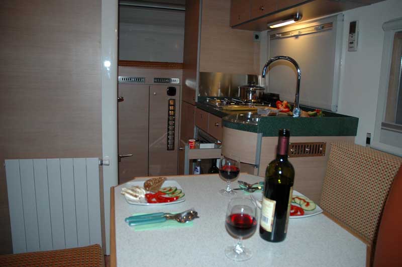 Unter voller Ausnutzung des zulässigen Hecküberhangs auf dem Scam-Chassis konnte Procab eine Wohnkabine von 3,62 Metern realisieren. Von denen gehen auf der rechten Seite schon mal rund sechzig Zentimeter für den innen liegenden, zweistufigen Einstieg ab. Um dennoch einen Grundriss mit separater Dusche realisieren zu können, musste Jung  bei der Möblierung um jeden Zentimeter kämpfen.