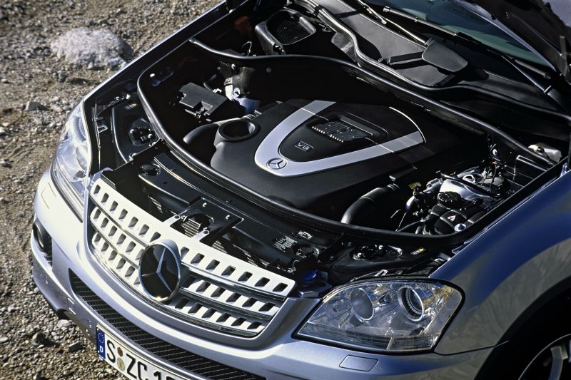 Überarbeitete SUV-Welt von Mercedes-Benz mit Allradantrieb 4MATIC - Seite 4Mit einer neuen Motorisierung geht die Mercedes-Benz M-Klasse ins neue Modelljahr. Der 285 kW/388 PS starke ML 500 4MATIC verfügt nun über den 5,5-Liter-V8-Benzinmotor. Die Leistung des ML 500 4MATIC stieg im Vergleich zum Vorgängermodell um 82 PS, das maximale Drehmoment von ursprünglich 460 auf 530 Newtonmeter. Diese Leistungssteigerung verbessert die Fahrleistungen erheblich: Der ML 500 4MATIC beschleunigt nun in 5,8 Sekunden auf Tempo 100, der Vorwärtsdrang endet bei elektronisch begrenzten 250 km/h. Gestiegene Motorleistung und gehobene Fahrleistungen sind jedoch nicht mit einem erhöhten Verbrauch verbunden, der NEFZ-Gesamtverbrauch hat sich mit 12,8 Litern je hundert Kilometer um 0,6 Liter reduziert. Das Benziner-Angebot wird durch den 200 kW/272 PS starken ML 350 mit V6-Motor und die High-Performance-Variante ML 63 AMG mit 375 kW/510 PS ergänzt, die gegenüber dem ML 500 4MATIC kaum bessere Fahrleistungen bei jedoch deutlich höherem Verbrauch bringt.