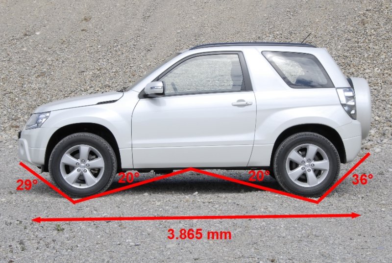 Böschungswinkel v/h 29° / 36°