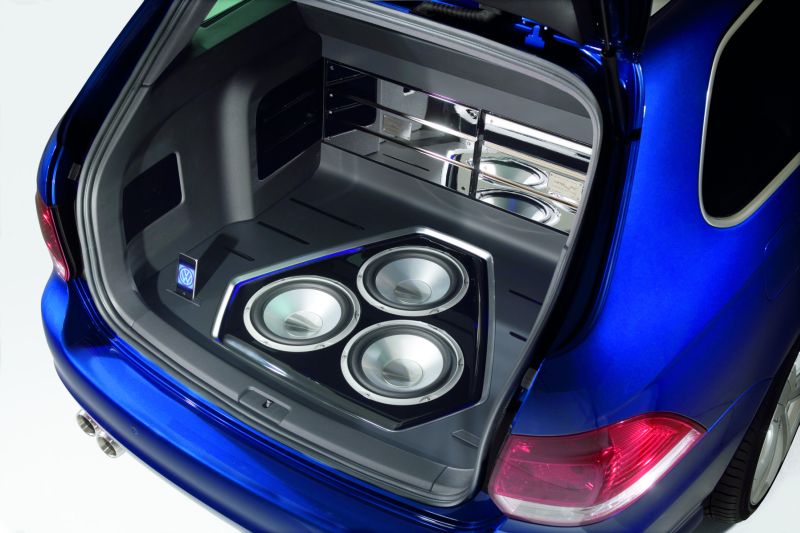 An Bord des Golf Variant RaVe 270 befindet sich zudem eine Volkswagen Soundanlage der Extraklasse mit einer Musikleistung von 1400 Watt. Die Basis dieser einmaligen Anlage bildet das neue Radio-Navigationssystem RNS 510. Über drei mächtige Endstufen werden insgesamt 13 Lautsprecher versorgt. Ein 880 Watt starker Subwoofer sowie zwei weitere 250-Watt-Subwoofer in Chrom sind dabei für die deutlich „spürbaren" Töne zuständig.