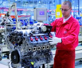 Die Direkteinspritzung FSI bringt den feinst dosierten Kraftstoff mit bis zu 120 bar Druck in die Brennräume. Dies ermöglicht die für einen Turbomotor sehr hohe Verdichtung von 10,5 – eine hocheffiziente Verbrennung ist die Folge. Deshalb gibt sich der Motor mit einem Normverbrauch von 13,9 Liter zufrieden – angesichts des Potenzials ein sehr guter Wert.