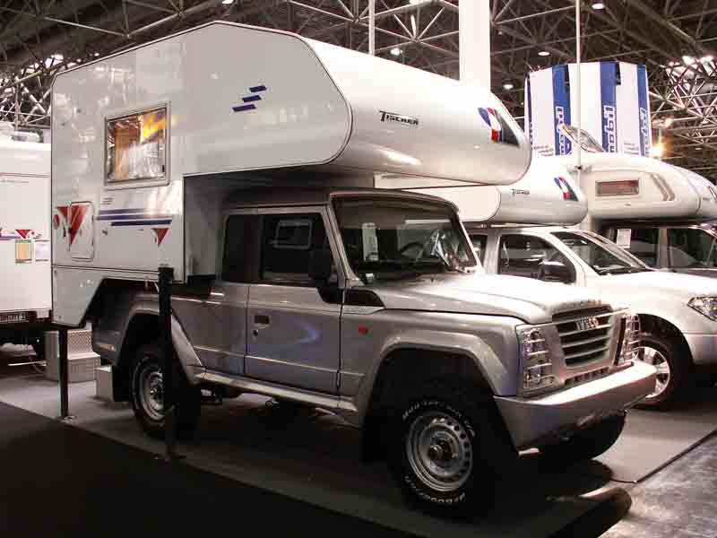 Ebenfalls auf einem Basisfahrzeug aus dem Hause Iveco baut die bewährt-bekannte Box 200 von Tischer Freizeitfahrzeuge: Der Wohnkabinen-Spezialist aus Kreuzwertheim hat sein kompaktes Zweipersonen-Modell für den neuen Massif-Pickup adaptiert. Der überzeugt mit einem solidem Leiterrahmen, blattgefederten Starrachsen sowie einem klassischen Zuschalt-Allrad inklusive Geländereduktion für das 6-Gang-Schaltgetriebe. Das Basisfahrzeug mit dem 107 kW/146 PS starken Vierzylinder 3,0-Liter HPI Common-Rail-Turbodiesel steht mit 29.090 Euro in der Preisliste. Für 1.900 Euro ist das auch im Daily 4x4 verbaute hubraumgleiche Triebwerk mit variabler Turboladergeometrie und 130 kW/176 PS zu haben. Die mit 3,67 Meter äußerst kompakt bauende Tischer Box 200 mit Doppelbett im Alkoven über dem Fahrerhaus, anschließender Sitzgruppe, Küchenzeile, optionalem 88-Liter-Kühlschrank sowie Kleiderschrank ist ab knapp 13.320 Euro zu haben.