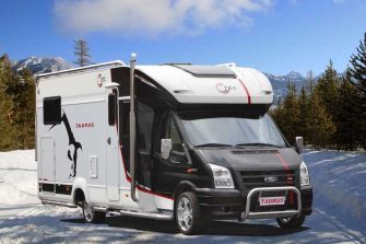 Vorstellung mit Knalleffekt: T.E.C. 4x4 CrossTEC Mehr Showcar denn als praxisorientiertes Reisemobil ist der 4x4 CrossTEC von Reisemobilhersteller T.E.C. Die mit reichlich Chrom-Accessoires verzierte Studie des teilintegrierten auf Basis eines allradgetriebenen Ford Transit wurde mit viel Rauch und musikalischen-optischen Effekten enthüllt. Ob und wie diese Transit-Allradversion, auf der prinzipiell alle Grundriss-Varianten von T.E.C. aufbauen können, in Serie geht ist noch nicht entschieden. In der auf dem Caravan Salon vorgestellten Ausführung mit Breitreifen ist sie indes nicht einmal schlechtwegetauglich, sondern bietet lediglich Traktionsvorteile auf nassen Wiesen oder Schnee – Pneus mit entsprechend grobem Profil vorausgesetzt.