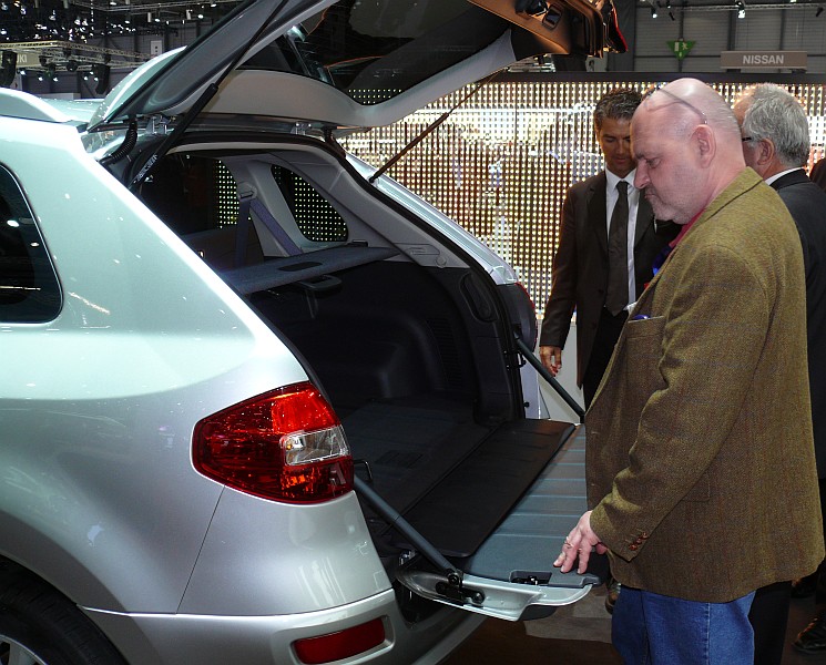 Zum bequemen Be- und Entladen verfügt der Koleos über eine horizontal geteilte Heckklappe, deren unteres Segment sich dank einer Tragfähigkeit von 200 Kilogramm von zwei Personen als Sitzgelegenheit nutzen lässt.