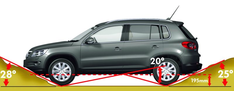 Der Volkswagen Tiguan setzt mit seiner hohen Fahrdynamik neue Maßstäbe in seinem Segment - Seite 9Ausstattungslinie Track&Field Der Tiguan Track&Field wurde mit seinem 28-Grad-Frontmodul speziell für den härteren Offroad-Einsatz konfiguriert. Serienmäßig verfügt der Tiguan Track&Field über einen Offroad-Taster, der auf Knopfdruck eine ganze Armada von Assistenzsystemen weckt, um Fahrten im Gelände besonders sicher zu machen. Im Detail werden mit dem Schalter auf einen Schlag der Bergabfahrassistent (optimale Kontrolle im Gefälle), eine Anpassung der Fahrpedal- charakteristik (feinere Dosierbarkeit des Motordrehmoments), die EDS-Anpassung (Elektronische Differentialsperren werden bei geringstem Schlupf aktiv), eine ABS-Anpassung (verbesserte Bremswirkung auf losem Untergrund), eine Anfahrhilfsfunktion (Unterstützung beim Anfahren und Schonung der Kupplung) und – in Verbindung mit Automatik – die Gangstufenvorwahl (u.a. optimale Motorbremswirkung) aktiviert. Darüber hinaus schickt Volkswagen den Tiguan Track&Field ohne Aufpreis mit den 16-Zoll-Leichtmetallrädern „San Diego“, der Reifendruckkontrollanzeige, einer schwarzen Dachreling, einem Triebwerksunterschutz, einer Kompassanzeige und speziellen Türstoßleisten in die großen und kleinen Abenteuer. Der Tiguan Track&Field ist zudem mit „Komfortsitzen“ ausgestattet, die über eine einstellbare Lordosenstütze verfügen. Bitte sehen Sie auch die Bilderschau des Tiguan