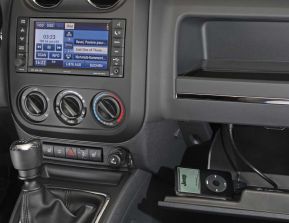 Alles so schön rund hier: Wer von einem „alten“ Jeep Patriot in das nun aktuelle Modell einsteigt, fühlt sich wie in einer neuen Wohnwelt. Weg von den Ecken und Kanten – die Formen des komplett frisch gezeichneten Armaturenbretts sind fließend und weich, ein Augenschmeichler für Ästhetiker. Nun ebenfalls eine runde Sache: die Lüftungsdüsen. Chrom-Einfassungen und -leisten hier wie dort – um die neu gezeichneten Rundinstrumente, die Schaltkulisse und in den komfortabler gepolsterten Armlehnen der gleichfalls umgestylten Türverkleidungen. Im neuen Design präsentiert sich zudem die Mittelkonsole: Sie bietet unter der verschiebbaren Armauflage dank einem geteilten Deckel nun mehr Ablagemöglichkeiten.