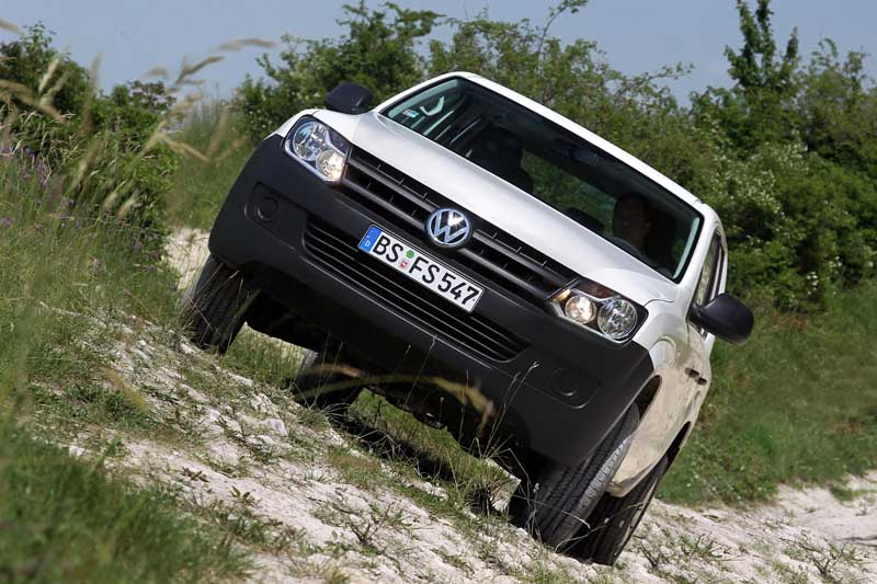 VW Amarok DoubleCab 2.0 BiTDI 4motion – Leitwolf für das Pickup-Rudel / Seite 3Den Berg hinauf kraxelt der Amarok aus dem Stand dank Berganfahrassistent und, einmal in Schwung, ohne Nachhilfe durch den rechten Fahrerfuß: Die Drehzahl wird von der intelligenten Elektronik bedarfsabhängig angehoben – keine Angst also vor dem Abwürgen. Für alle, die sich einen weiteren Traktionshelfer wünschen, bietet VW eine mechanische Hinterachsdifferenzial-Sperre für 672,35 Euro Aufpreis an. Zur Verkürzung der Bremswege im Gelände haben die Techniker eine Offroad-Funktion für das ABS eingebaut, die per Knopfdruck aktiviert wird und mit einem verlängerten Regelintervall arbeitet. Sie sorgt dafür, dass sich beispielsweise Schnee- oder Schotterbremskeile vor den Rädern aufbauen, der Amarok aber dennoch den Lenkbefehlen folgt. Für die folgende Etappe im asphaltierten Geläuf steigen wir auf die Variante mit dem permanenten Allradantrieb um: Der Quattro von Audi lässt hier in Gestalt des guten, alten Torsen-Differenzials grüßen. Die Kombination aus schräg und gerade miteinander verzahnten Zahnrädern reagiert bekanntlich auf Drehmomentunterschiede der beiden Achsen („Torque Sense“) mit einer Sperrwirkung. Es arbeitet im Sinne einer hohen Fahrdynamik auf der Straße mit einer Grundkraftverteilung von 40:60 zugunsten der Hinterachse, variiert diese aber je nach Traktionsbedarf zwischen den vorderen und hinteren Radpaaren. Nein, eine Untersetzung wird in dieser Kombination nicht angeboten – der Amarok-Permanent-4motion soll vorzugsweise die Klientel in Europa sowie im urbanen Umfeld ansprechen, die sich Fahrsicherheit und ein gewisses Traktionstalent in einem lifestyligen Pickup-Modell mit hoher Anhängelast (maximal 2.800 Kilogramm wie beim Zuschalter) wünschen.