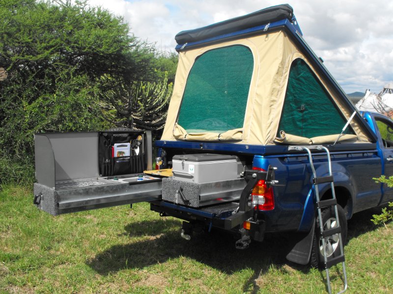 Der südafrikanische Outdoor-Spezialist African Outback macht mit seiner neuen Ladeflächen-Abdeckung, die mit wenigen Handgriffen zum Dachzelt wird, den Toyota Hilux Einzelkabiner zum Mini-Wohnmobil. Man nehme dazu einen Small-Size-Pickup mit Einzelkabine – wie eben den Toyota Hilux – verpasse ihm die neue Laderaumabdeckung von African Outback mit integriertem Dachzelt sowie einiges an zusätzlichem Outdoor-Equipment und schon steht einem Camping-Wochenende im afrikanischen Outback nichts mehr im Wege.