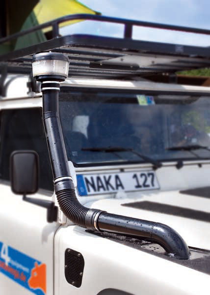 Nakatanenga: Neuer Schnorchel mit Zyklon-Filter für Defender TD430.06.2009 Einen Luftschnorchel mit dualer Schutzfunktion gibt's jetzt bei Landy-Ausrüster Nakatanenga für den Defender Td4: Es schützt sowohl den Ansaugtrakt des Motors als auch das Heizungssystem. Auf der Abenteuer&Allrad in Bad Kissingen hat 4x4-Spezialist Nakatanenga einen neuen Ansaugschnorchel für den Land Rover Defender Td4 vorgestellt: Das eigen entwickelte System mit einem integrierten Zyklon-Vorfilter erfüllt, so Firmenchef Peter Hochsieder, zwei Funktionen: Es bietet sowohl den klassischen Schutz des Ansaugtrakts vor Sand und Wasser als auch die Heizungsanlage vor eindringendem Regen oder Schnee. Für den Schutz der Heizungsanlage hat Hochsieder den Ansaugpunkt für die Heizungsluft verlegt und die Ansaugschellen vertauscht. Dies soll das Eindringen von Schnee und Dreck in das Heizsystem verhindern. Ansonsten ist der hochgelegte Schnorchel mit einem durchgängigen Querschnitt von 80 mm sowie einem strömungsoptimierten Verlauf ein konventioneller, hochgelegter Ansaugschnorchel in bekannter Nakatanenga-Machart: Die Rohre und Stutzen sind aus seewassserfestem, pulverbeschichtetem Aluminium gefertigt. die Befestigungsschellen aus Edelstahl. Ein Zyklon-Filter ist integriert und wird bei der Selbstmontage (gegen Aufpreis auch bei Nakatanenga in Berg bei Neumarkt) installiert. |