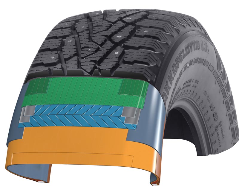Der neue Nokian Hakkapeliitta LT2 Winterreifen wurde speziell für schwere Geländewagen entwickelt. Seine Konstruktion ist optimiert für die großen Radlasten von SUVs, Pickups und Vans sowie auch für schwere Beladungen. Sein Stahlgürtel wurde im Schulterbereich besonders verstärkt und enthält über 60 Prozent mehr Stahl als normale Pkw-Reifen.