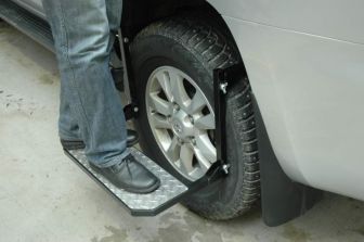 Mit dem SHERIFF Radtritt wird es zum Kinderspiel, den Dachgepäckträger komfortabel, sicher und schnell zu beladen. Die Montage ist denkbar einfach: aufklappen und über das Rad hängen, fertig. Wird der Radtritt nicht gebraucht, kann er zusammengefaltet und flach im Fahrzeug verstaut werden. Der Rahmen ist aus Kunststoff-beschichtetem Stahl, die Trittauflage aus Alu-Riffelblech, die Reifenbreite kann darüber hinaus individuell eingestellt werden. Der SHERIFF Radtritt ist ab sofort bei SGS für 49,90 Euro erhältlich.