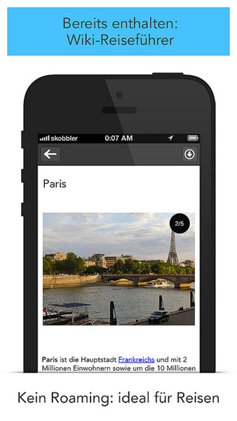 Skobbler ForeverMap 2 – Offline Navi und Reiseführer für Smartphone11.07.2013 Pünktlich zu Ferienbeginn erweitert der Berliner App-Entwickler skobbler seine vor kurzem runderneuerte iOS-Karten-App „ForeverMap 2" um einen Reiseführer mit zahlreichen Bild- und Textinformationen zu tausenden Zielen auf der ganzen Welt. Mit der Integration von Wiki-Reiseinfos in die auf der OpenStreetMap basierenden App besteht nun die Möglichkeit, einen vollwertigen Reisebegleiter auf dem iPhone immer zur Hand zu haben. Wie die Karten selbst, steht auch der neue Reiseführer unabhängig von der Internetverbindung zur Verfügung. Weltweites Kartenmaterial, der volle Funktionsumfang und die Informationen zu Orten, Sehenswürdigkeiten und Kultur sind auch offline verfügbar – ohne zusätzliche Kosten. Man ist so unabhängig von Empfang und Datenvolumen und spart im Ausland hohe Roamingkosten. In ForeverMap 2 gibt es unter den verschiedenen Kartenstilen auch ein Outdoor-Design, und die Routenanzeige lässt sich für Auto, Fußgänger und Fahrrad einstellen. Zum Start der Urlaubssaison reduziert skobbler vorübergehend den Preis der App von regulär 2,69 Euro auf 89 Cent – erhältlich ist sie im im Apple App-Store. Auch für Android-Smartphones bietet skobbler Offline-Kartenapps an.