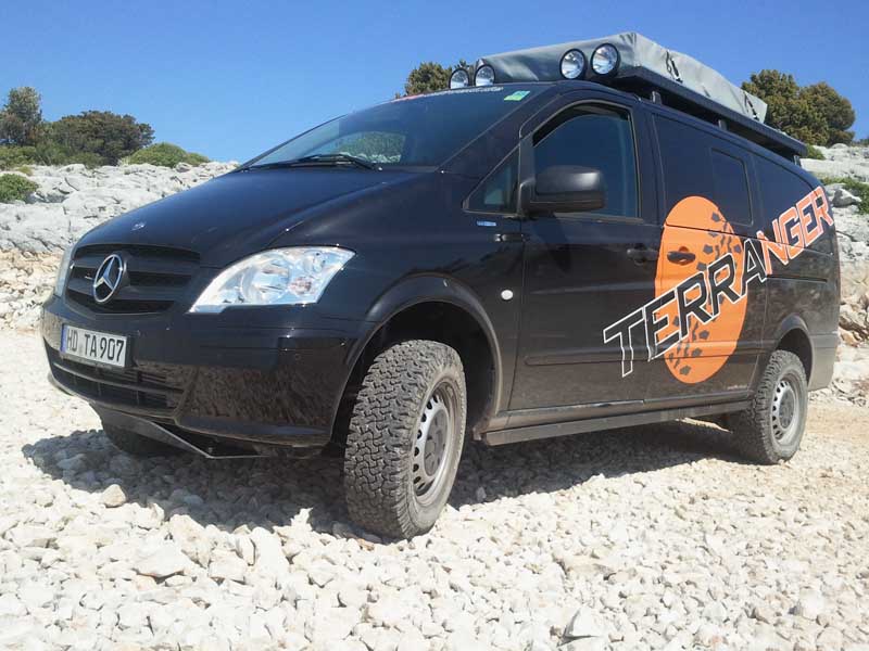 Terranger: Höherlegungssatz für Mercedes Vito / Viano 4x419.12.2012 Offroad-Potenzial für alle Mercedes Vito und Viano (Baureihe W639/2) mit Allradantrieb: Fahrwerks-Spezialist Terranger aus Neidenstein hat ein umfangreiches Höherlegungskit entwickelt, das aus dem 4x4-Nutzkombi ein passables 4x4-Nutz-SUV macht. Der Satz liftet das Chassis um 30 Millimeter und kostet – ohne Einbau – 1.399 Euro inkl. Mehwertsteuer. In Kombination mit größeren Rädern kommt der Vito/Viano damit gar um 5,5 Zentimeter höher. Diplom-Ingenieur Heiko Ernst hat dazu Formstücke aus hochfestem Aluminium konstruiert, mit denen er die vorderen Federbeine tiefer setzt und die Federn der Hinterachse von der Karosserie distanziert. Die Hinterachs-Schwingungsdämpfer werden durch längere Hochleistungspedants aus dem Hause KW ersetzt. „Wir haben die Komponenten so konzipiert, dass sowohl der originale Federweg als auch die Beugung der Antriebswellen an der Hinterachse beibehalten werden“ so Ernst. Auf Wunsch übernimmt Terranger vor Ort auch den Einbau des Höherlegungssatzes und veranschlagt dafür rund acht Stunden. Die Eintragung des Kits erfolgt per Einzelabnahme. Auch für die Schweiz gibt es mittlerweile eine Betriebserlaubnis. |
