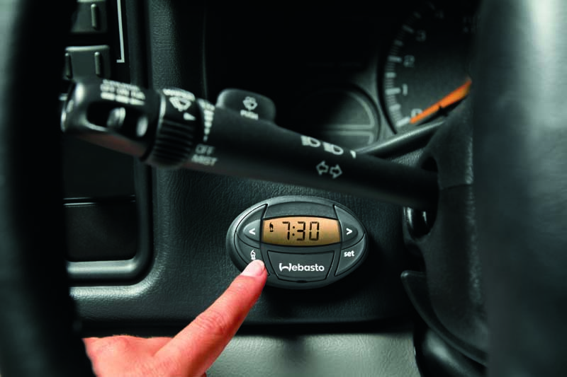 Zur Steuerung der Thermo Top Evo-Standheizungen bietet Webasto mehrere Bedienelemente gegen Aufpreis an: Eine digitale Komfort- und Vorwahluhr mit drei programmierbaren Startzeiten sowie zwei funkgesteuerte Fernbedienungen. In deren Topvariante ist ein Heizzeitmanager integriert, der den optimalen Startzeitpunkt für die Heizung nach Innenraumtemperatur und eingegebener Abfahrtszeit ermittelt und aktiviert.